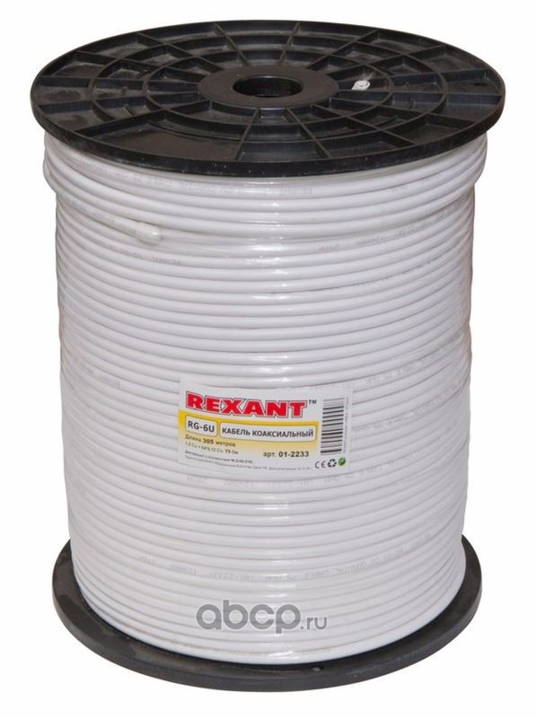Кабель коаксиальный REXANT RG-6U, 75 Ом, CCS/Al/Al, 64%, бухта 305 м, белый