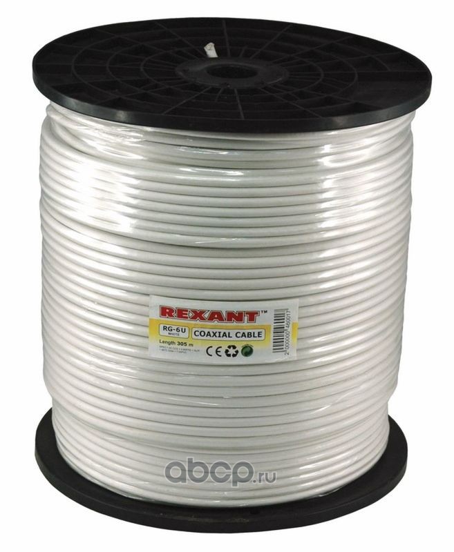 Кабель коаксиальный REXANT RG-6U+Cu, 75 Ом, Cu/Al/Cu, 75%, бухта 305 м, белый
