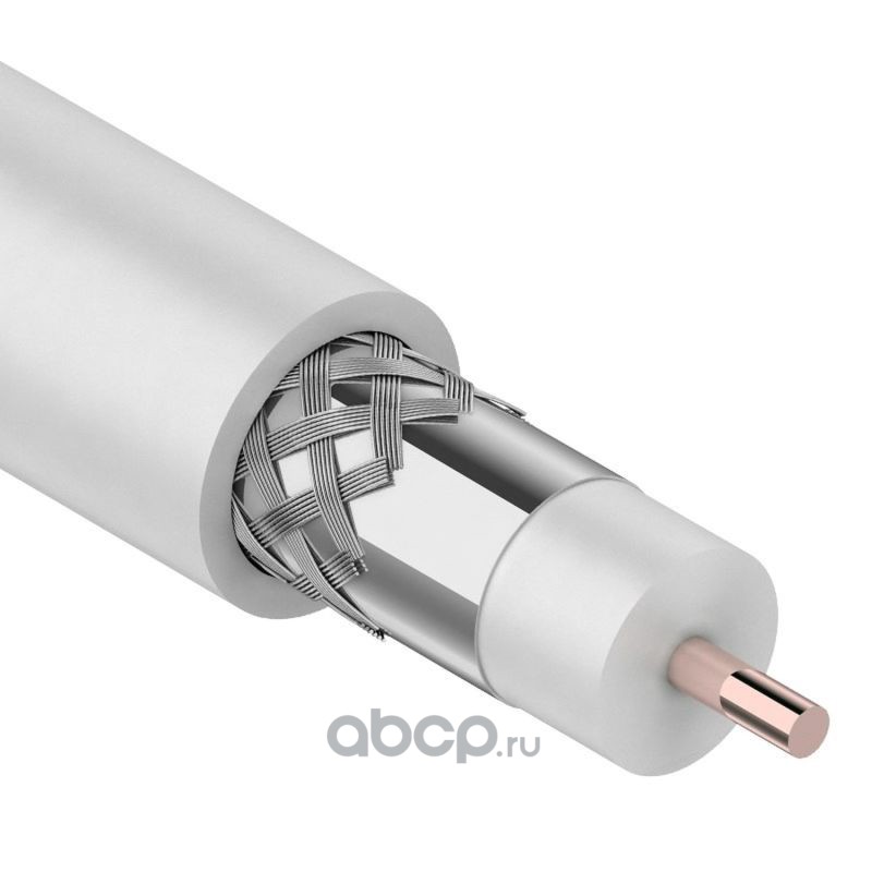 Кабель коаксиальный REXANT RG-59U+Cu, 75 Ом, Cu/Al/Cu, 64%, бухта 100 м, белый