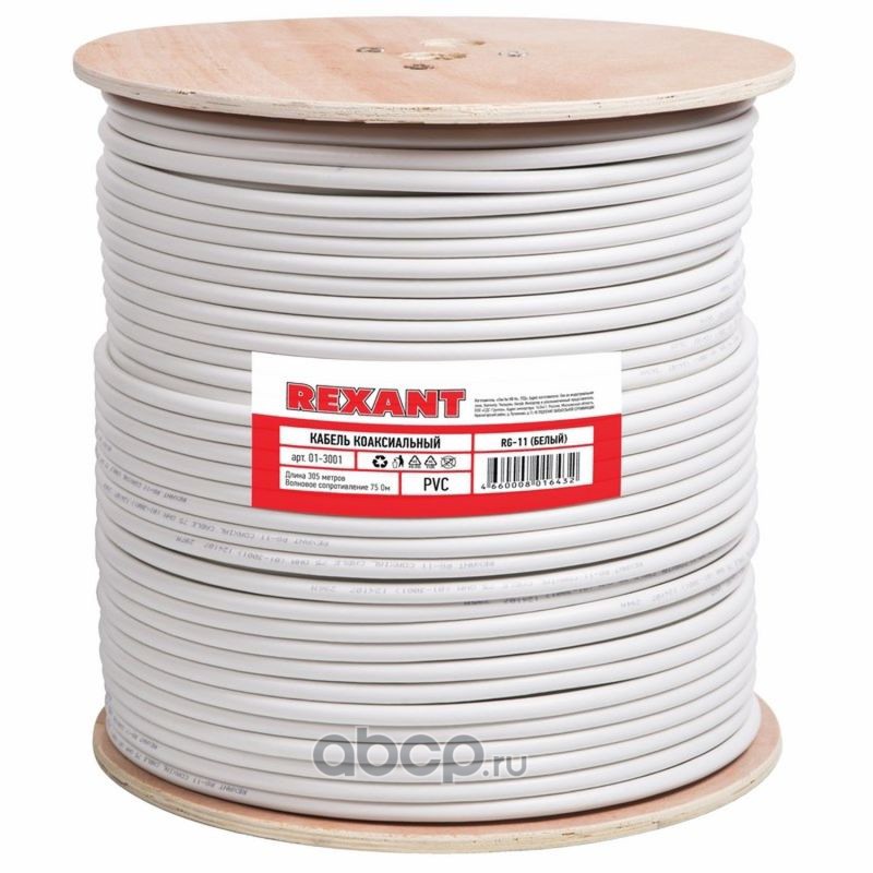 Кабель коаксиальный магистральный REXANT RG-11U, 75 Ом, CCS/Al/Al, 83%, бухта 305 м, белый