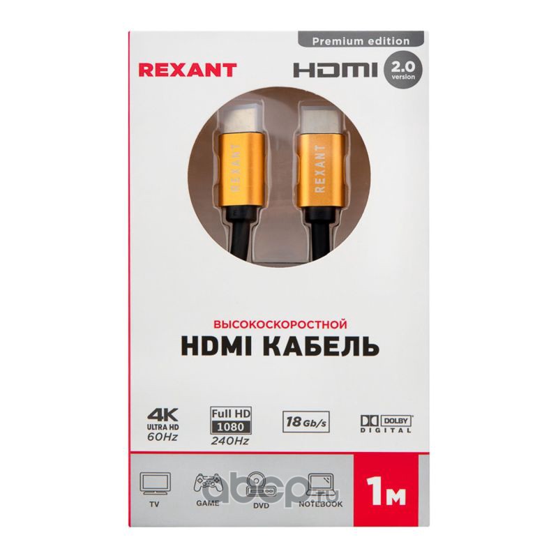 Кабель REXANT HDMI - HDMI 2.0 длина 1 метр (GOLD)