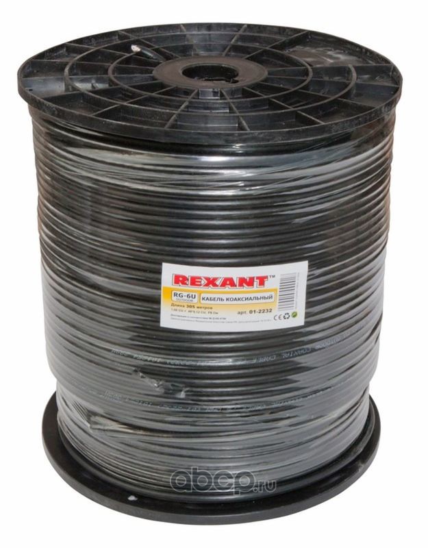 Кабель коаксиальный REXANT RG-6U, 75 Ом, CCS/Al/Al, 64%, бухта 305 м, черный OUTDOOR