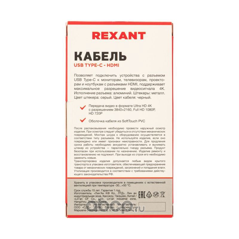 Кабель REXANT USB Type-C - HDMI, 2 м
