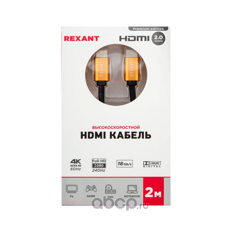 Кабель REXANT HDMI - HDMI 2.0, 2 м Gold