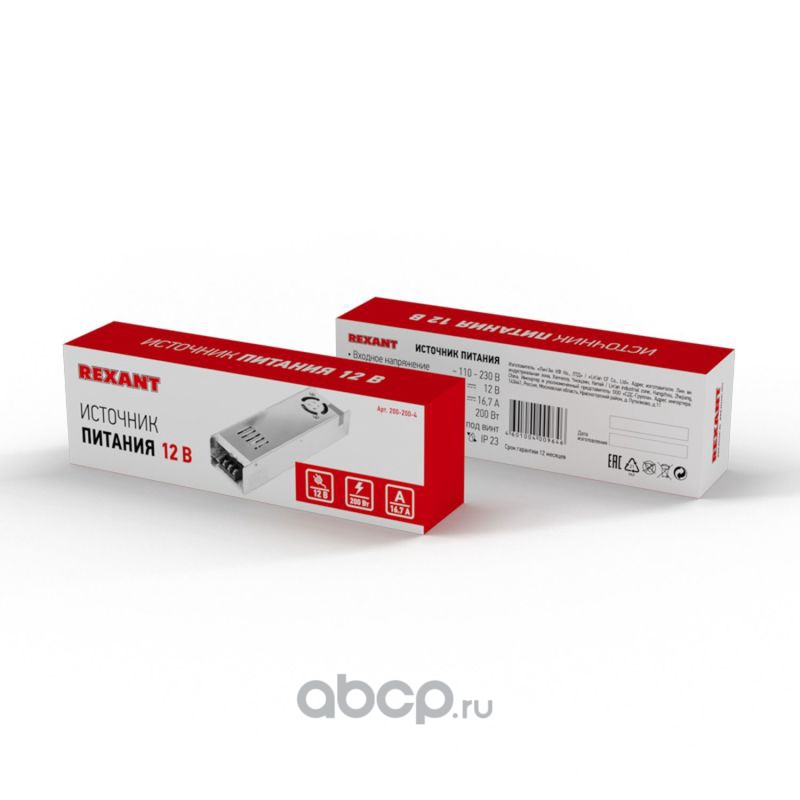 Источник питания компактный 12 V 16,7 A 200 W с разъемами под винт, без влагозащиты (IP23)