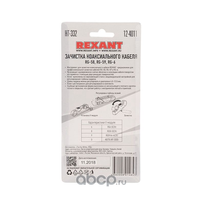 Инструмент для зачистки коаксиального кабеля REXANT HT-332 RG-58, RG-59, RG-6