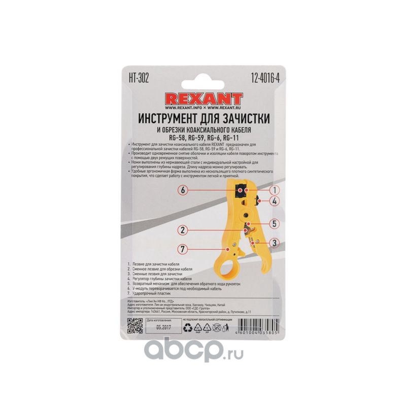 Инструмент для зачистки и обрезки кабелей REXANT HT-302 RG-58, RG-59, RG-6, RG-11.
