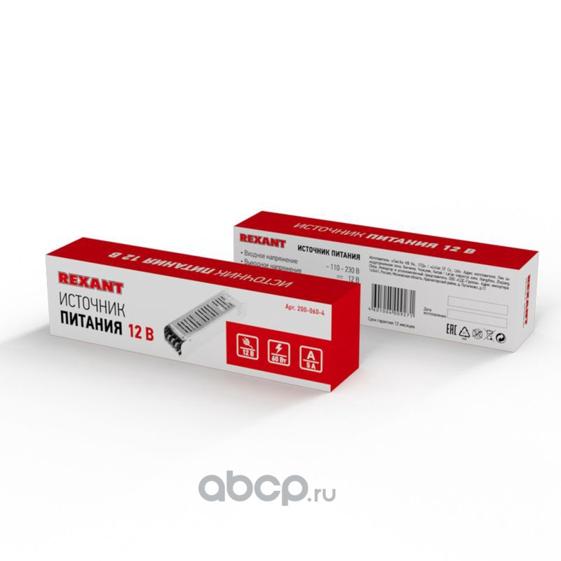 Источник питания компактный 12 V 60 W с разъемами под винт, без влагозащиты (IP23)