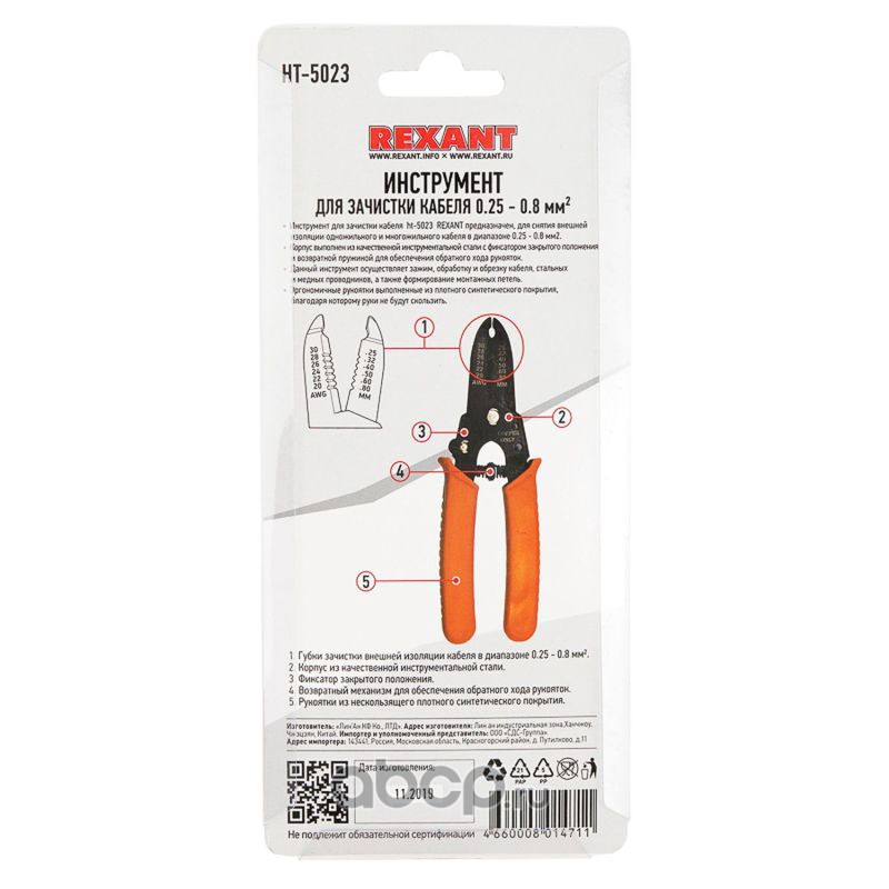 Инструмент для зачистки кабеля REXANT HT-5023 0.25-0.8 мм