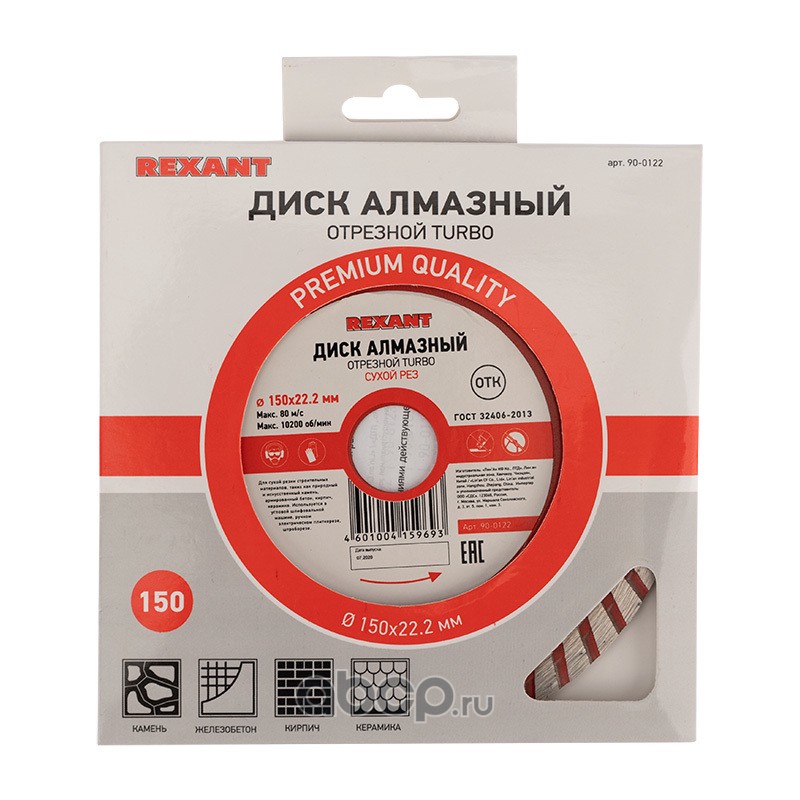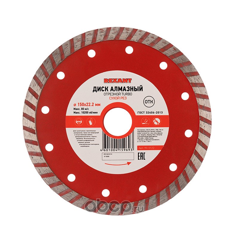 Диск алмазный отрезной Turbo 150x22.23х2,4x10 мм REXANT