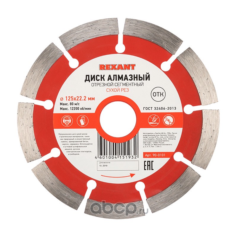 Диск алмазный отрезной сегментный 125x22.23х1,8x10 мм REXANT