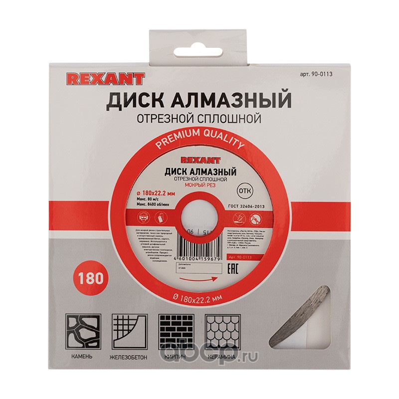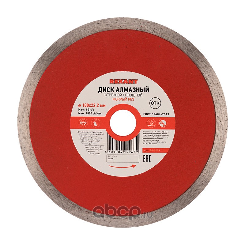 Диск алмазный отрезной сплошной 180x22.23х1,8x10 мм REXANT