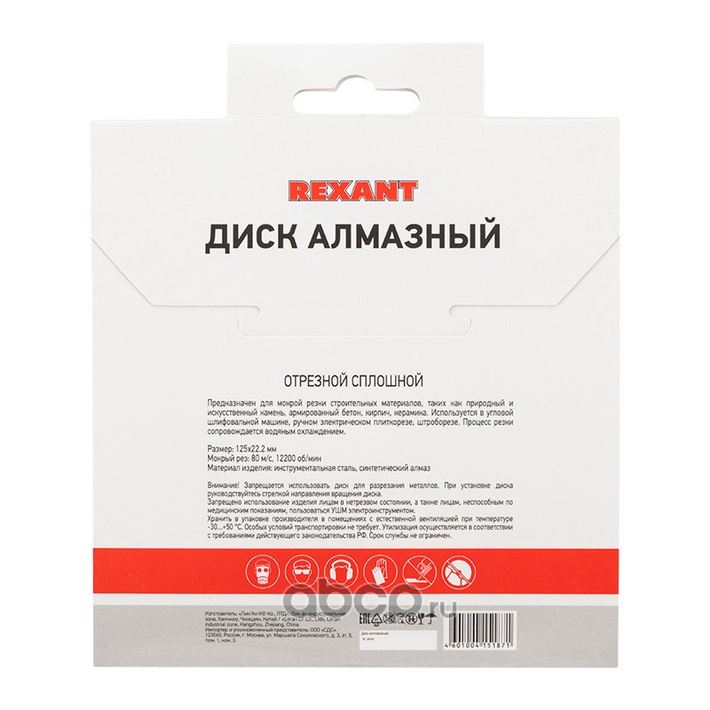 Диск алмазный отрезной сплошной 125x22.23х1,8x10 мм REXANT