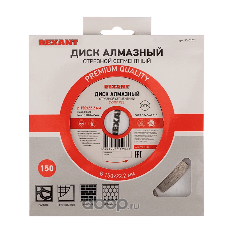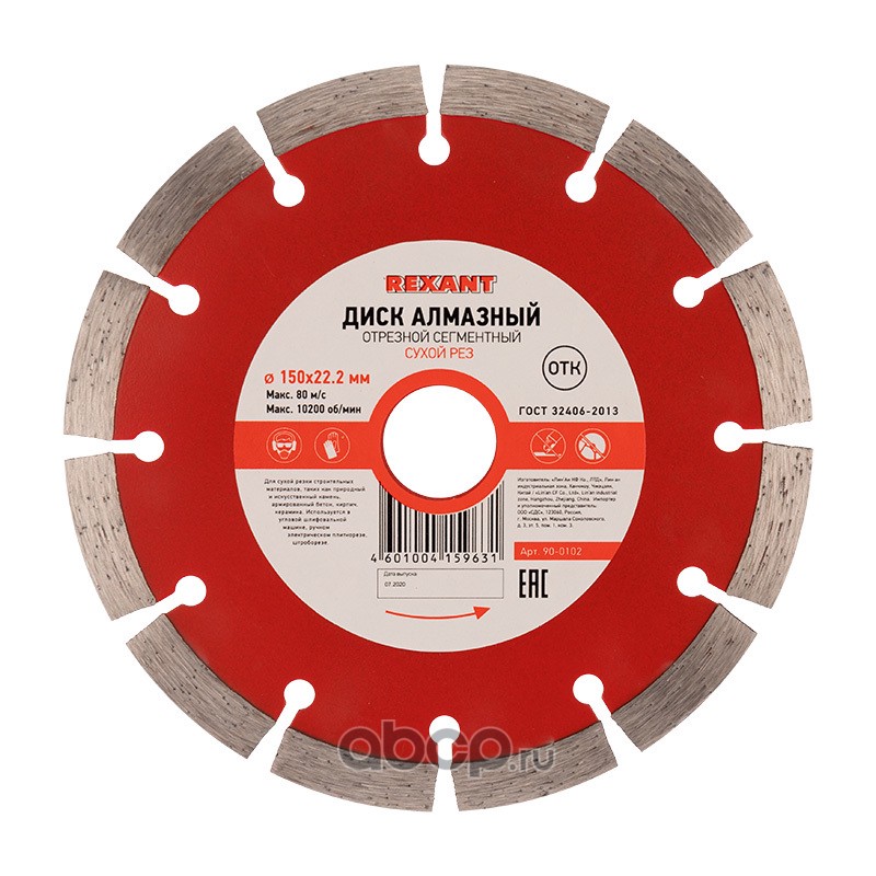 Диск алмазный отрезной сегментный 150x22.23х2x10 мм REXANT