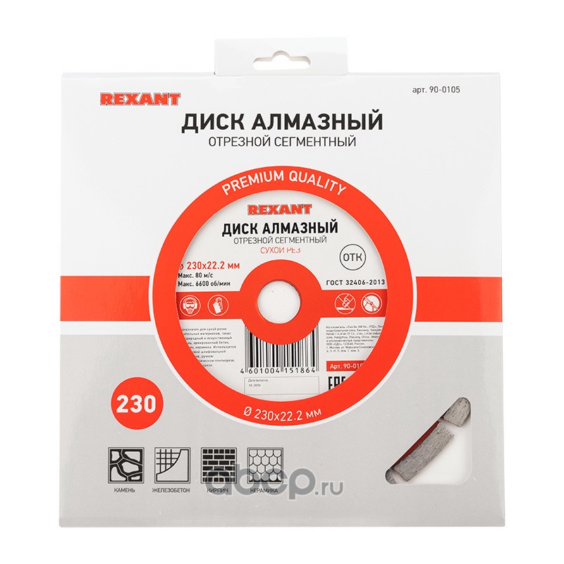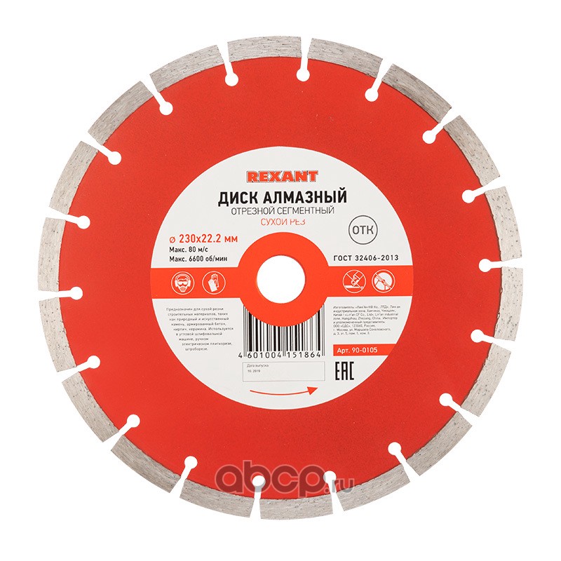 Диск алмазный отрезной сегментный 230x22.23х2,4x10 мм REXANT