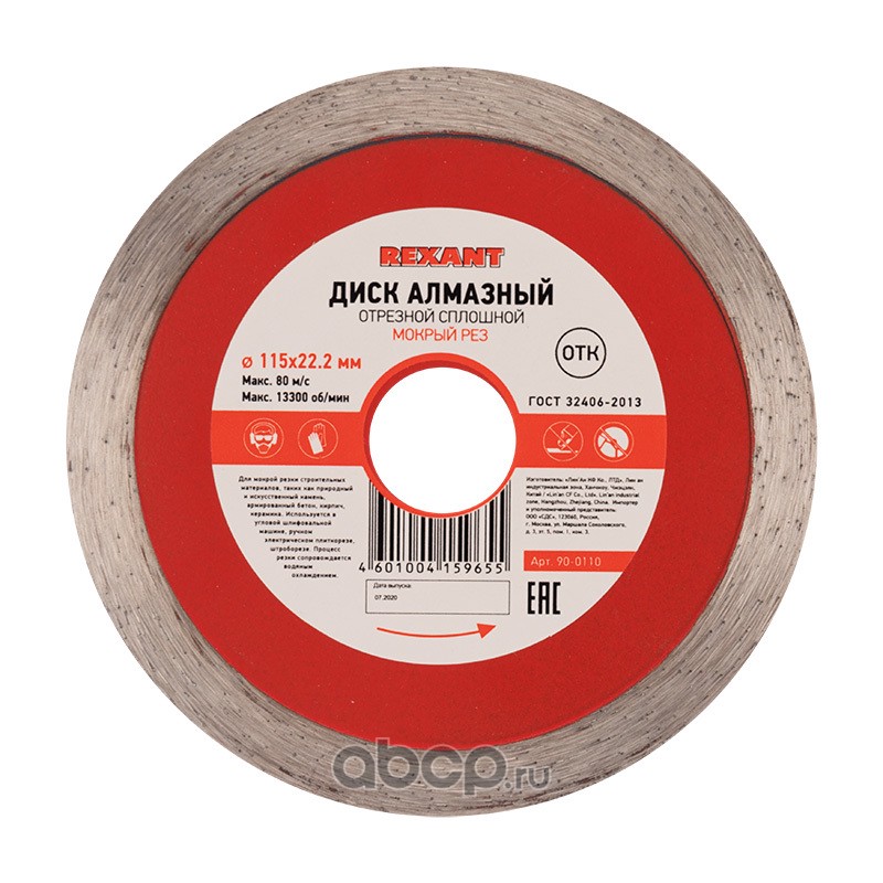 Диск алмазный отрезной сплошной 115x22.23х1,8x10 мм REXANT