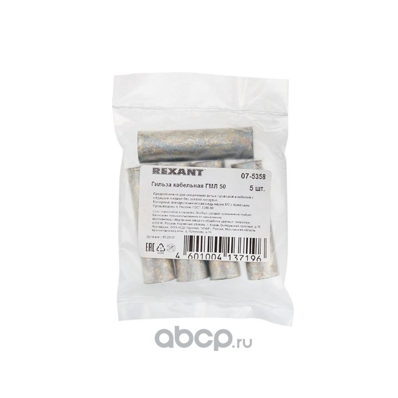 Гильза кабельная ГМЛ 50-11 (50мм² - Ø11мм) ГОСТ 23469.3-79 (в упак. 50шт), REXANT