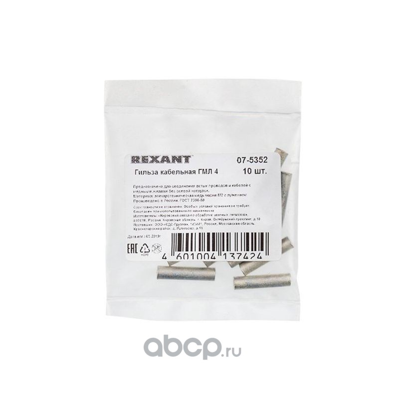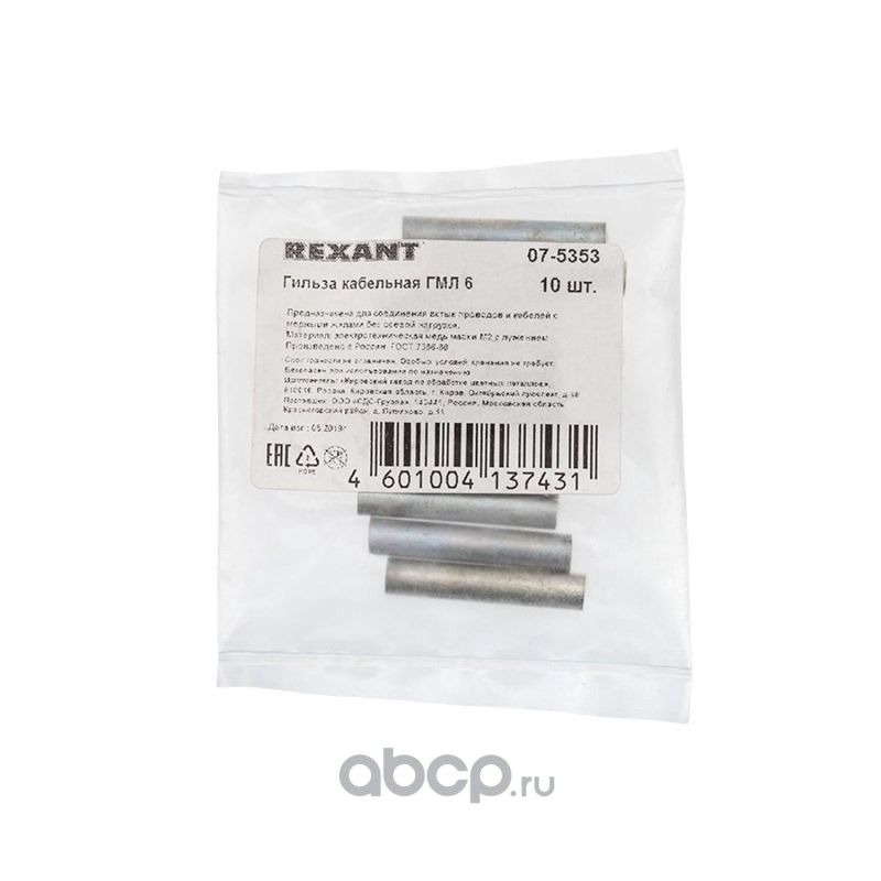 Гильза ГМЛ 6-4 (6 мм² - Ø 4 мм) ГОСТ 23469.3-79 (в упак. 10 шт.) REXANT