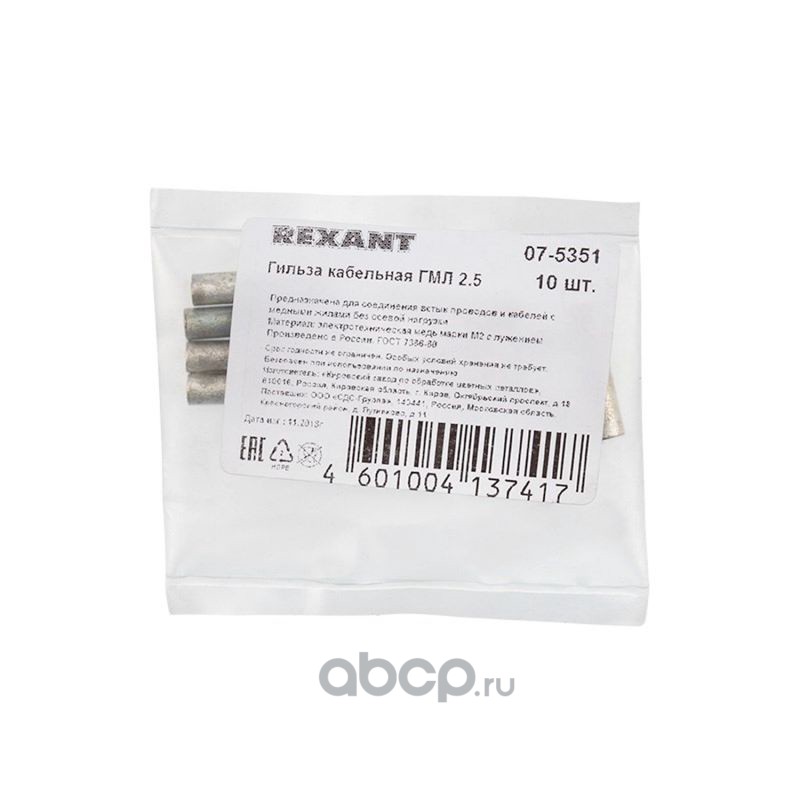 Гильза ГМЛ 2,5-2,6 (2,5 мм² - Ø 2,6 мм) ГОСТ 23469.3-79 (в упак. 10 шт.) REXANT