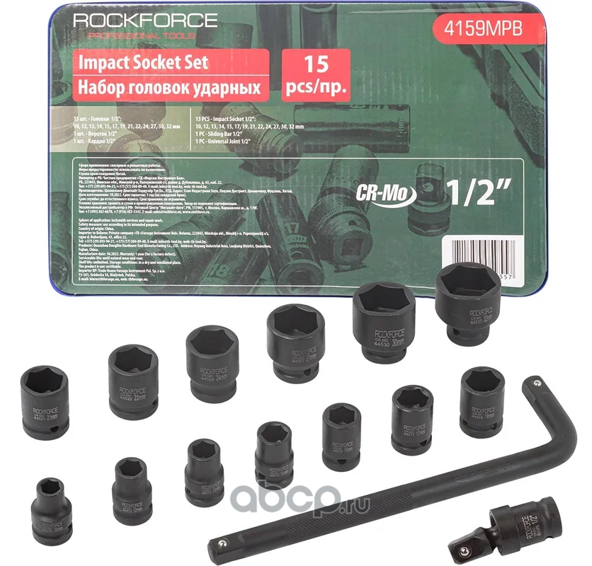 ROCK FORCE | RF420225 | Набор инструментов 202пр. 1/4''&3/8''&1/2''(6-гран.)(4-32мм) | |