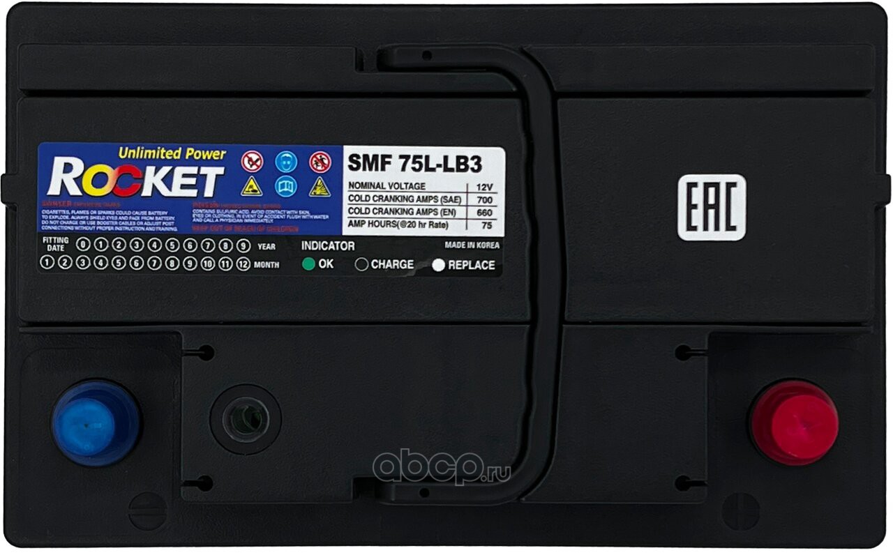 | ROCKET | SMF75LLB3 | Батарея аккумуляторная 75А/ч 700А обратная полярн. стандартные (Европа) клеммы | ||