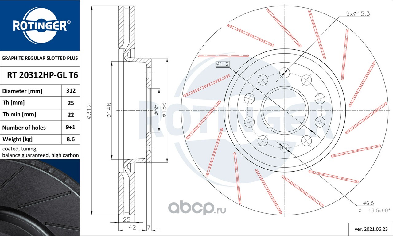 | ROTINGER | RT20312HPGLT6 | Диск тормозной графитовый высокоуглеродистый со сплошным слотированием |