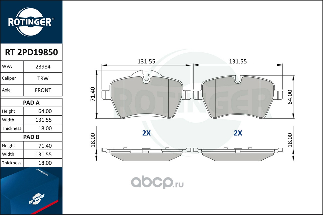 | ROTINGER | RT2PD19850 | Колодки тормозные | ||
