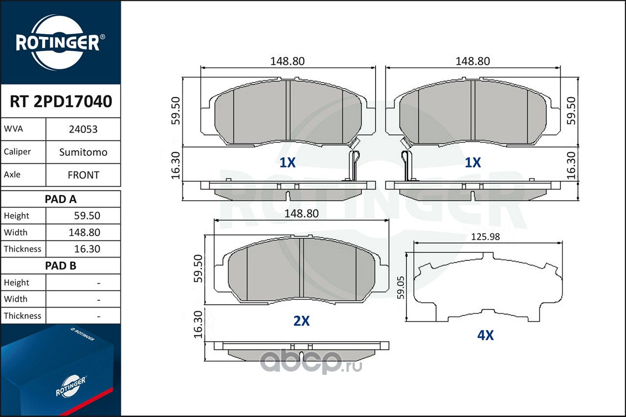 | ROTINGER | RT2PD17040 | Колодки тормозные | ||