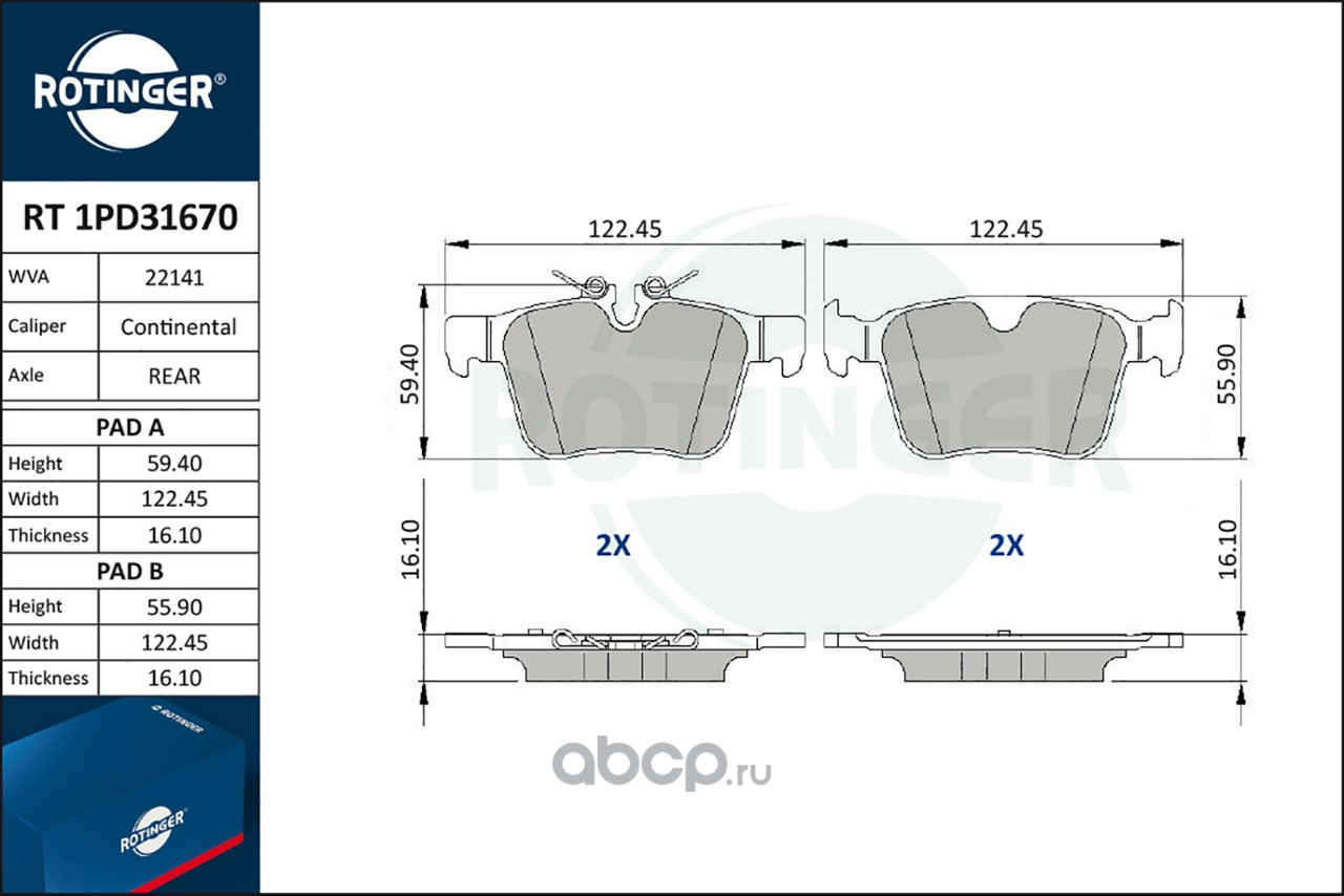 | ROTINGER | RT1PD31670 | Колодки тормозные | ||