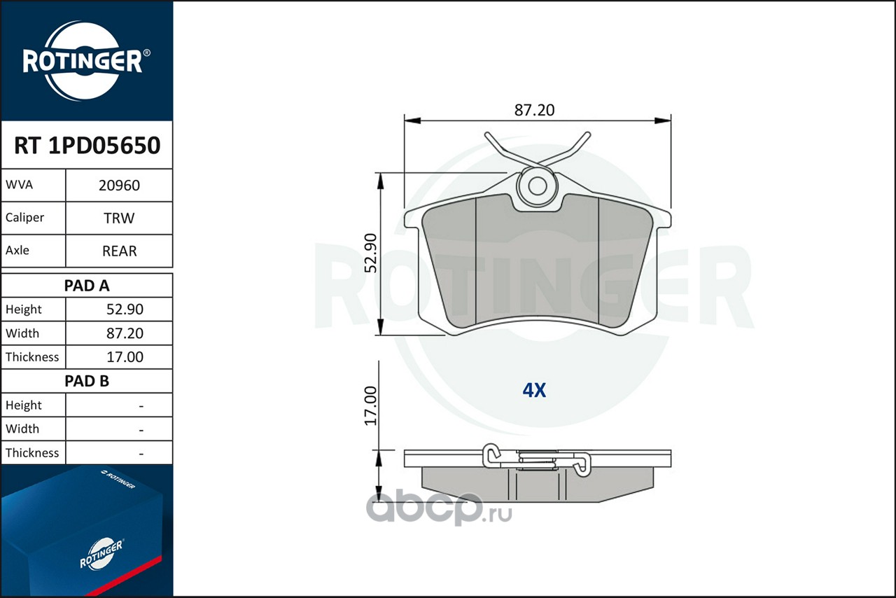 | ROTINGER | RT1PD05650 | Колодки тормозные | ||