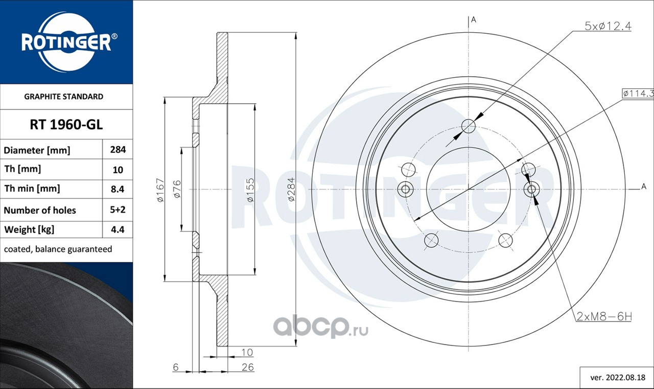 | ROTINGER | RT20044GL | Диск тормозной графитовый | ||