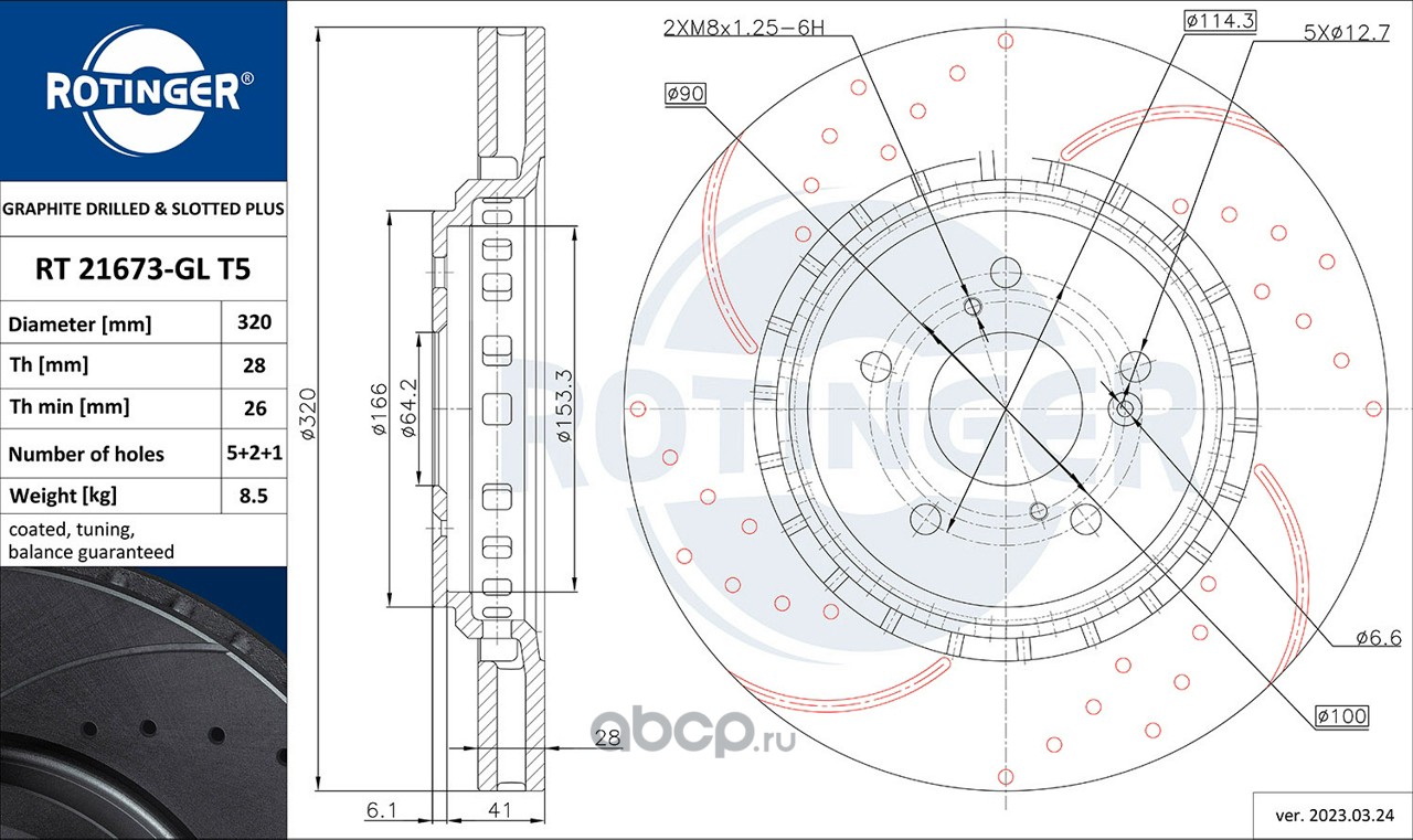 | ROTINGER | RT2865GLT5 | Диск тормозной графитовый с двойной перфорацией и насечками | ||