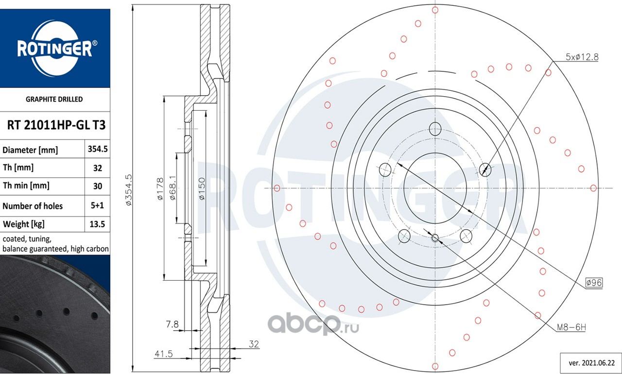 | ROTINGER | RT21148GLT5 | Диск тормозной графитовый с двойной перфорацией и насечками | ||