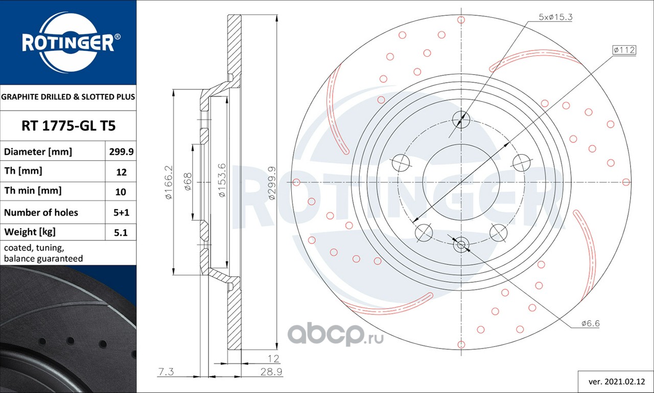 | ROTINGER | RT1775GLT5 | Диск тормозной графитовый с двойной перфорацией и насечками | ||
