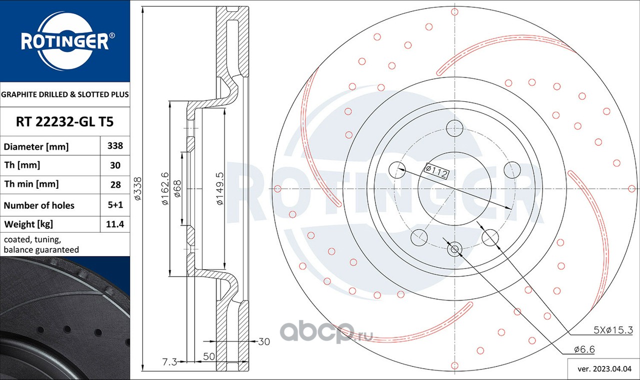 | ROTINGER | RT22022GLT5 | Диск тормозной графитовый с двойной перфорацией и насечками | ||