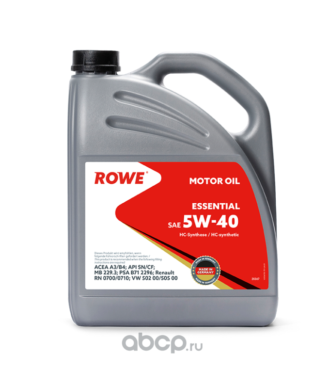 | ROWE | 203675952A | Масло моторное синтетика ROWE ESSENTIAL 5W-40 5 л. | ||