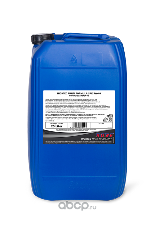 | ROWE | 2013825003 | Масло моторное синтетика ROWE HIGHTEC Multi Formula 5W-40 25 л. |