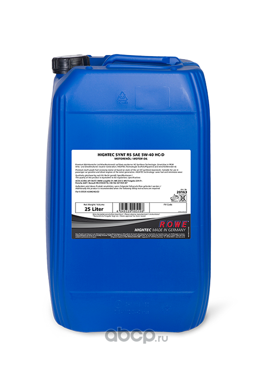| ROWE | 2016325003 | Масло моторное синтетика ROWE HIGHTEC Synt RS 5W-40 25 л. | ||