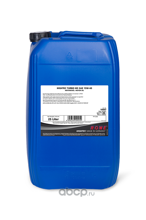 | ROWE | 2000725003 | Масло моторное минеральное ROWE HIGHTEC Turbo HD 15W-40 25 л. | ||