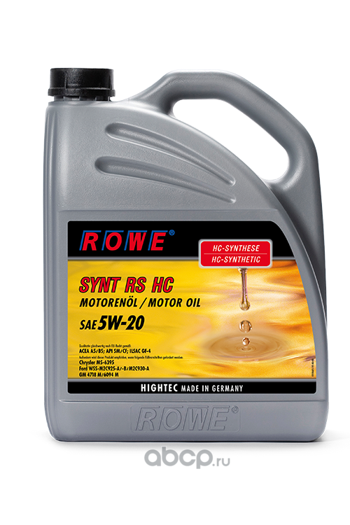 | ROWE | 2018653803 | Масло моторное синтетика ROWE HIGHTEC SYNT RS HC 5W-20 5 л. | ||