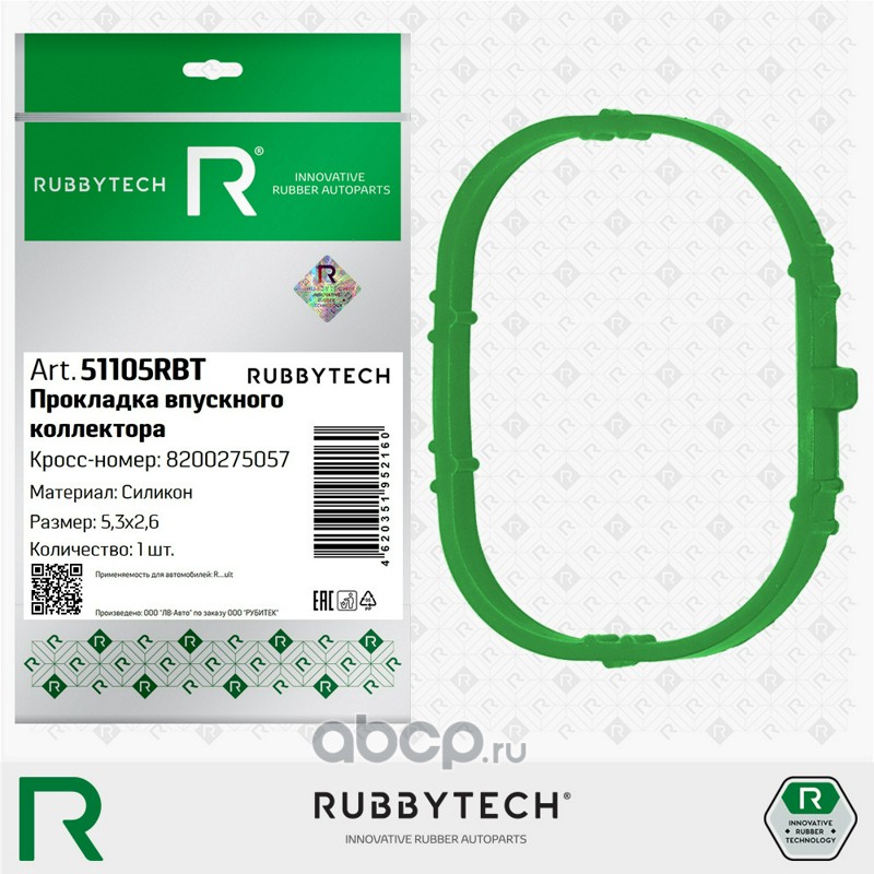 | RUBBYTECH | 51105RBT | Прокладка впускного коллектора 5,3х2,6 MVQ | ||