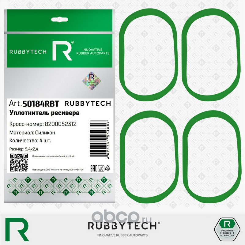 | RUBBYTECH | 50184RBT | уплотнитель ресивера (16кл. Двиг.) 4шт 5,4х2,4 MVQ | ||