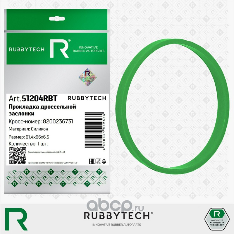 | RUBBYTECH | 51204RBT | Прокладка дроссельной заслонки 61,4x66x6,5 MVQ |