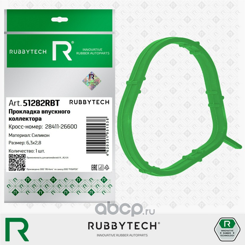 | RUBBYTECH | 51282RBT | Прокладка впускнного коллктора 6,3х2,8 MVQ | ||