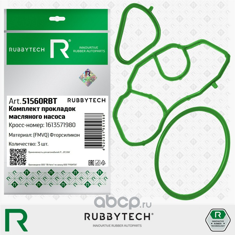 | RUBBYTECH | 51111RBT | Комплект прокладок адаптера и корпуса масляного фильтра 5шт MVQ | ||