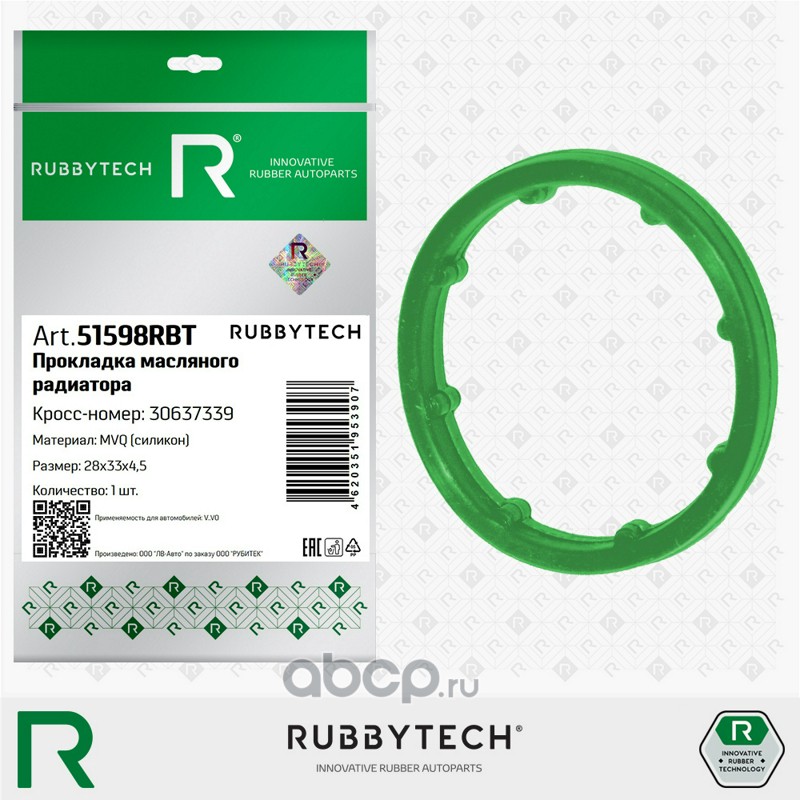 | RUBBYTECH | 51598RBT | Прокладка масляного радиатора 28x33x4,5 FMVQ | ||