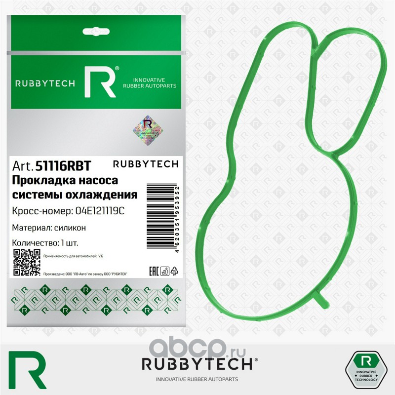 | RUBBYTECH | 51116RBT | Прокладка насоса системы охлаждения MVQ | ||