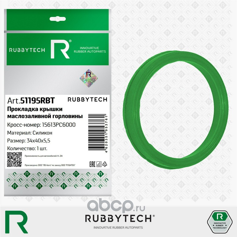 | RUBBYTECH | 51195RBT | Прокладка крышки маслозаливной горловины 34x40x5,5 MVQ | ||