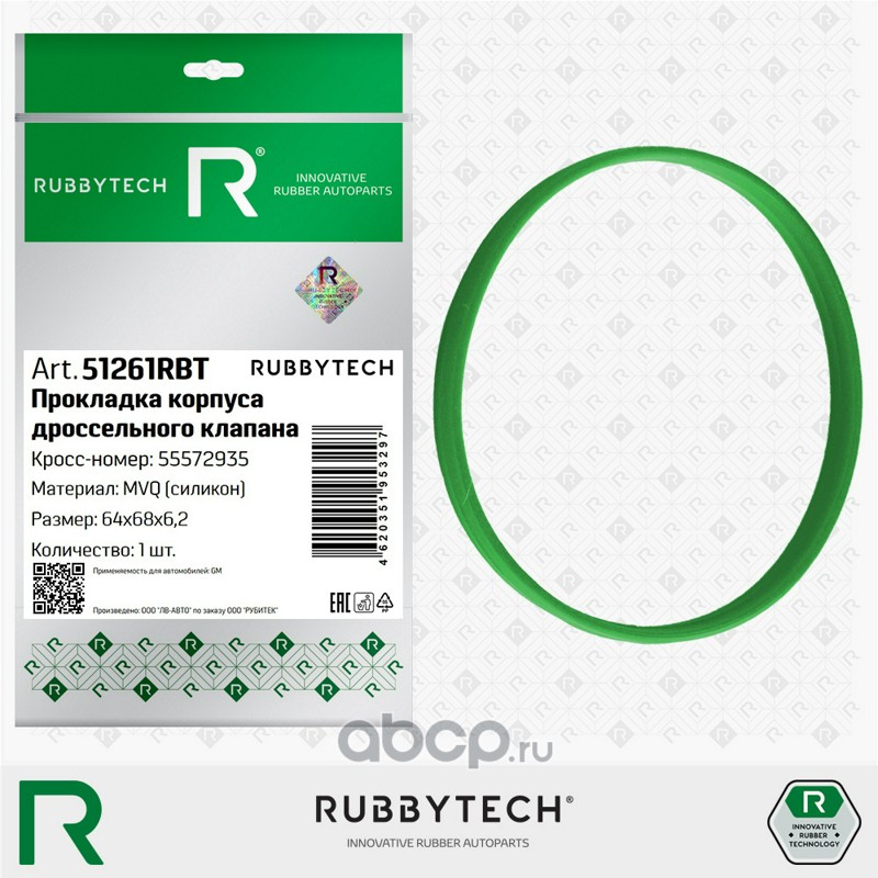 | RUBBYTECH | 51261RBT | Прокладка корпуса дроссельного клапана 64x68x6,2 MVQ | ||