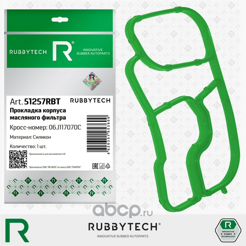 | RUBBYTECH | 51257RBT | Прокладка корпуса масляного фильтра FMVQ | ||